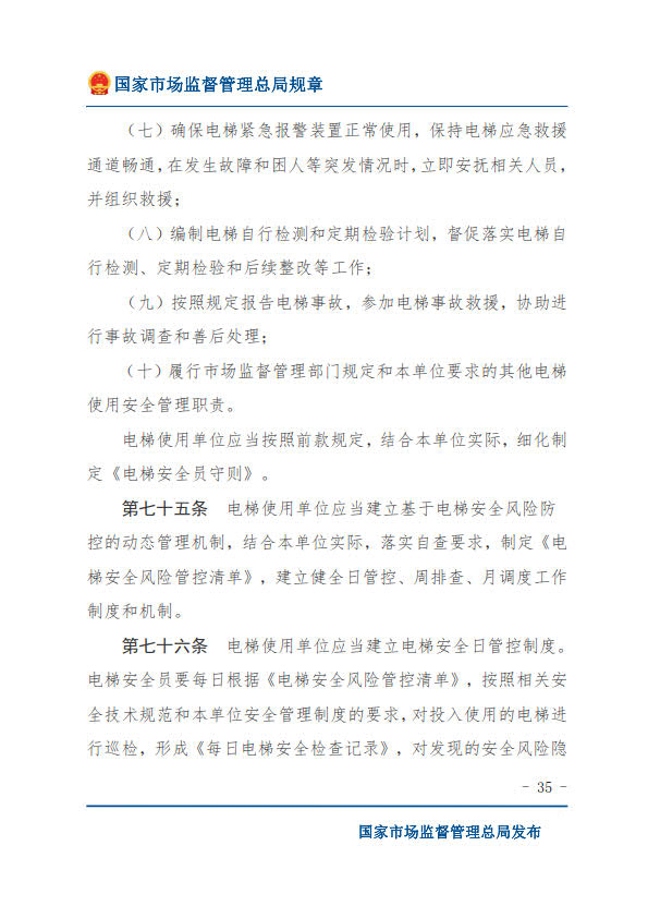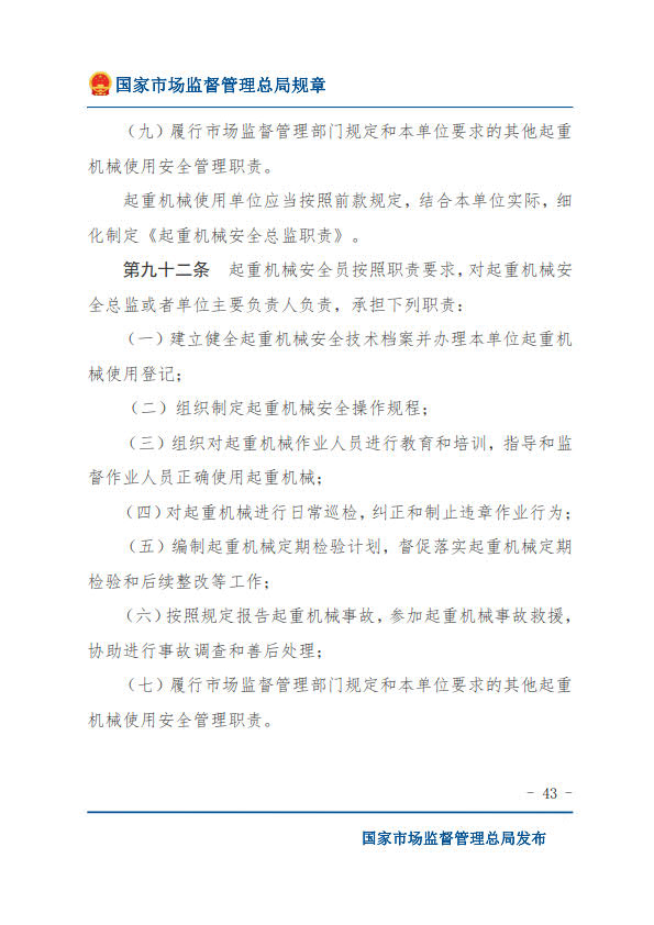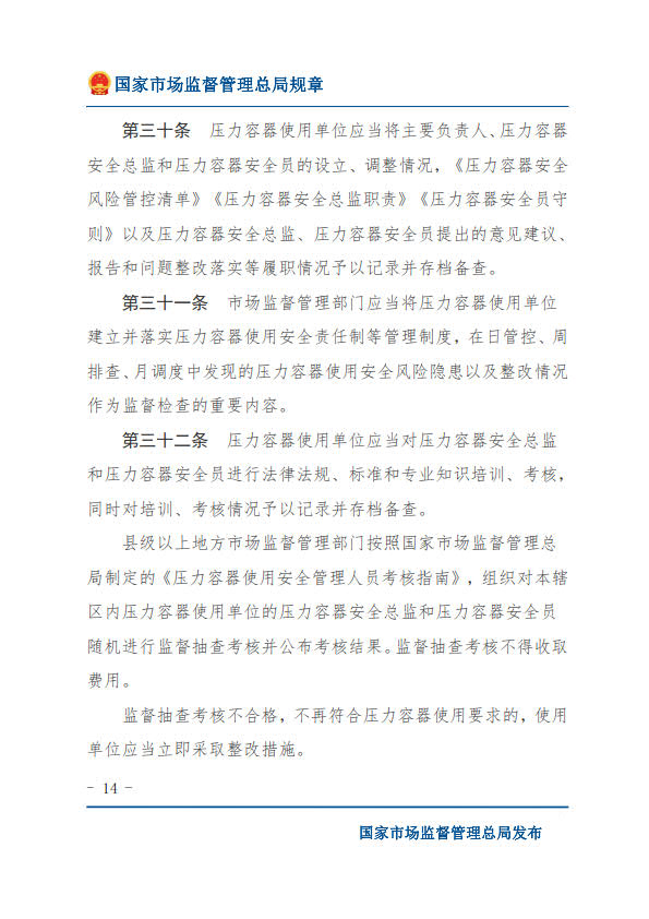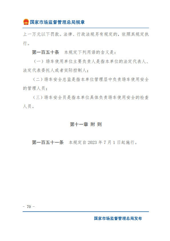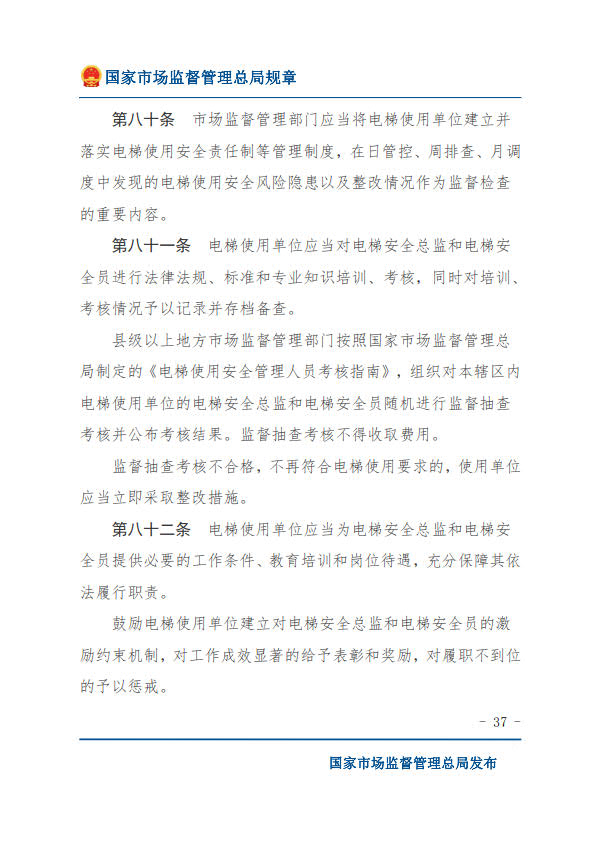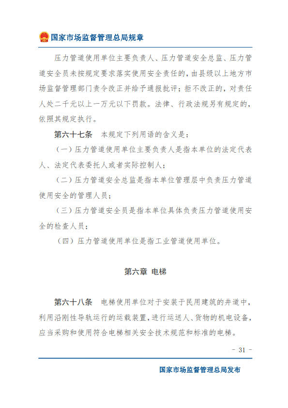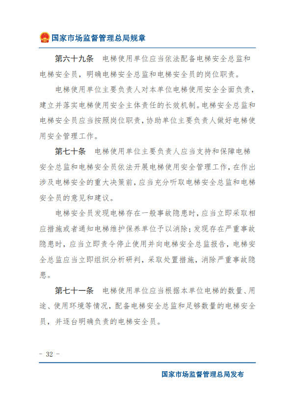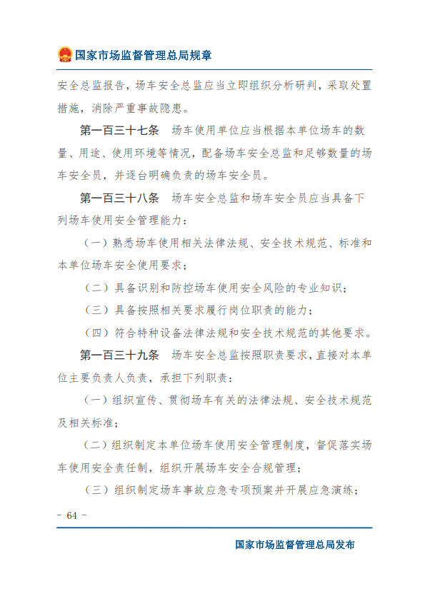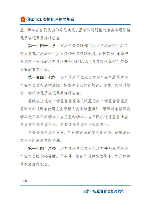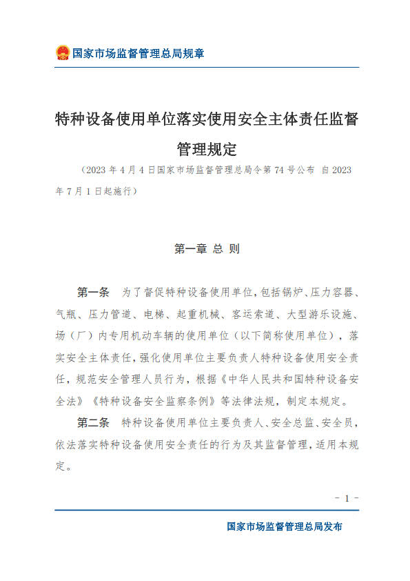 國家市場(chǎng)監(jiān)督管理總局令第74號(hào)特種設(shè)備使用單位落實(shí)使用安全主體責(zé)任監(jiān)督管理規(guī)定(2023年4月4日國家市場(chǎng)監(jiān)督管理總局令第74號(hào)公布 自2023年7月1日起施行)